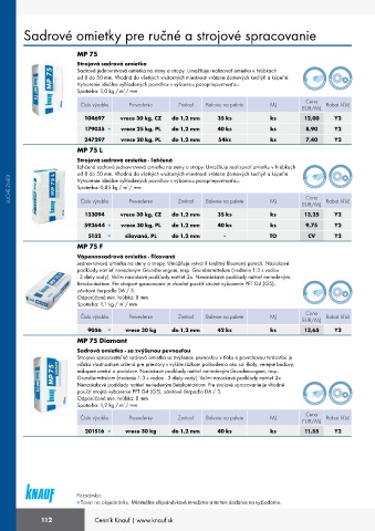 SUCHÉ ZMESI Spotreba: 0,85 kg / m / mm Zrnitosť Balenie na palete MJ Cena Rabat. kľúč SUCHÉ ZMESI