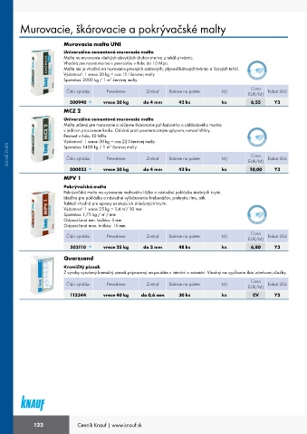 Výdatnosť: 1 vrece 30 kg = cca 22 l čerstvej malty RUČNE SPRAC OVATEĽNÉ