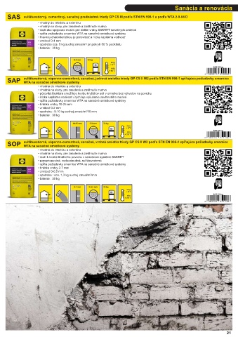 SAS sulfátuvzdorný, cementový, sanačný prednástrek triedy GP CS III podľa STN EN 998-1 a podľa WTA 2-9-04/D